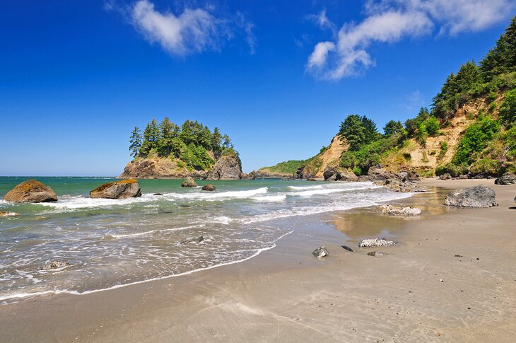 苏梅格州立公园(Sue-Meg State Park)在特立尼达(Trinidad)以北不到六英里处,是另一个密集的冒险目的地。这个大约一平方英里的州立公园涵盖了一个森林的岬角进入海洋。