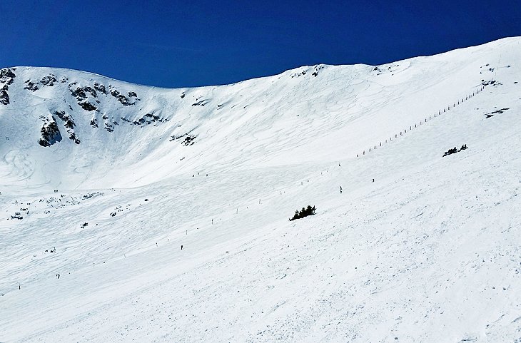 雪人,拥有3300多英亩的地形,在规模方面占主导地位。基本高度刚刚超过8,100英尺,顶部高度刚好超过12,500英尺。它在很大程度上是一个面向家庭的山丘,中间滑雪很棒。