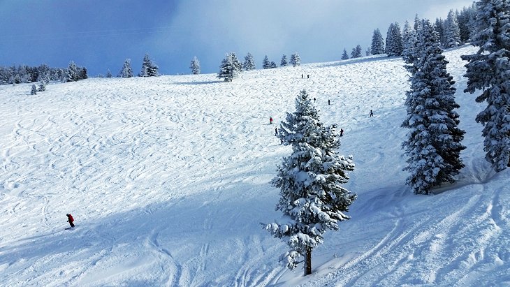 这座山提供了初学者,中级和高级跑步的良好混合,专家将发现大量的远足地形,以实现更极端的滑雪。年度降雪量约为300英寸。